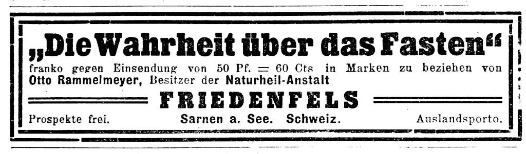 In: Deutscher Vegetarierbund (Hrsg.); Vegetarische Warte – Zeitschrift für naturgemässe Lebenskunst 1912/14 vom 06.06.1912, S.138