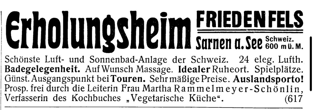 [Empfehlung] Friedenfels bei Sarnen in der Schweiz, Prof. Dr. Bücking, Metz;