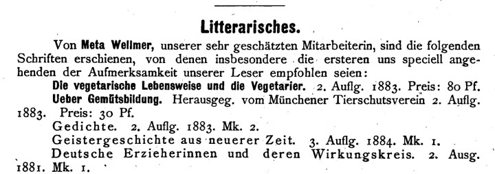 In: Maximilian Klein und Otto Rabe (Hrsgg.); Vegetarische Rundschau, Monatsschrift für naturgemässe Lebensweise, 04/1883, S.114